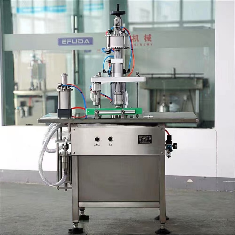 二合一气雾剂灌装机,在设计方面将半自动内容物灌装机、半自动封口机,且可以任意单机工作.任意两机联动工作,都可任意调节。
